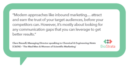 Inbound marketing is one approach that we’ve helped to pioneer here at BioStrata that aims to put the customer at centre-stage, and finds the best ways to communicate and connect with them. I discussed this recently with Chemical & Engineering News (C&EN).